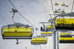 Ein Athlet von Swiss Ski Alpin auf dem Lift zur Trainingsstation während der Winter-Paralympics 2014 in Sotschi in Krasnaja Poljana, Russland, am Montag, 10. März 2014. (KEYSTONE/Ennio Leanza)