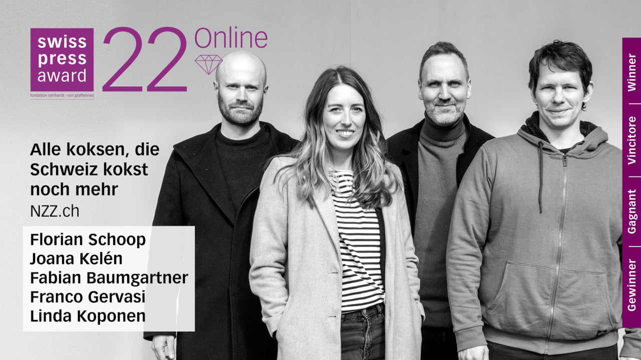 Alle koksen, die Schweiz kokst noch ein bisschen mehr – so funktioniert die Versorgung mit dem weissen Rausch (Swiss Press Online 2022, von Joana Fabian Baumgartner, Florian Schoop, Linda Kaponen, Franco Gervasi, Joana Kelén,) - Swiss Press Award