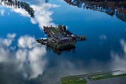 Underwater world: After torrential rainfalls in November, large areas of Ticino are covered by water. On 16 November 2014, this farm in the Piano de Magadino becomes a temporary island.