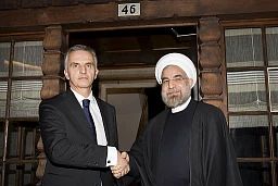 Le président de la Confédération suisse Didier Burkhalter, à gauche, serre la main du président iranien Hassan Rohani, à droite, avant une réunion bilatérale en marge de la 44e réunion annuelle du Forum économique mondial, WEF, à Davos, en Suisse, le jeudi 23 janvier 2014. Le thème général de la réunion, qui se tiendra du 22 au 25 janvier, est La refonte du monde : conséquences pour la société, la politique et les entreprises.