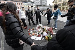 Yverdon, le 19 janvier 2014. Un groupe de personnes se recueil sur la place Bel-Air après le déçès de Dylan, jeune apprenti cuisinier de 17 ans, mort après avoir été agressé pour sa veste de marque Lonsdale.