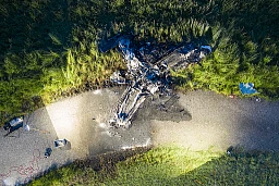 Le lieu du crash d'un petit avion près de l'aérodrome de Birrfeld près de Mülligen, dans le canton d'Argovie, le mardi 14 mai 2019.