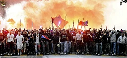 Tifosi del Basilea in marcia verso il Letzigrund di Zurigo l'11 maggio 2011