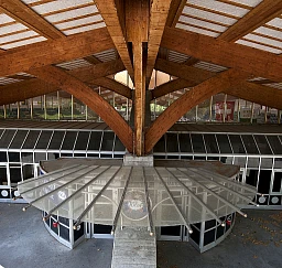 Una foto settimanale di un luogo famoso, fotografato da un'angolazione insolita. Pista di pattinaggio su ghiaccio di Morges. Castello di Nyon. Zona industriale di Payerne. Serbatoio idrico a torre di Montagny. Municipio di Cheserex.