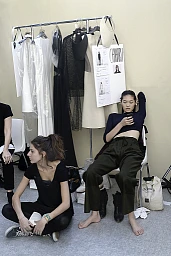 Controllo del cellulare - backstage, poco prima della sfilata di Akris a Parigi